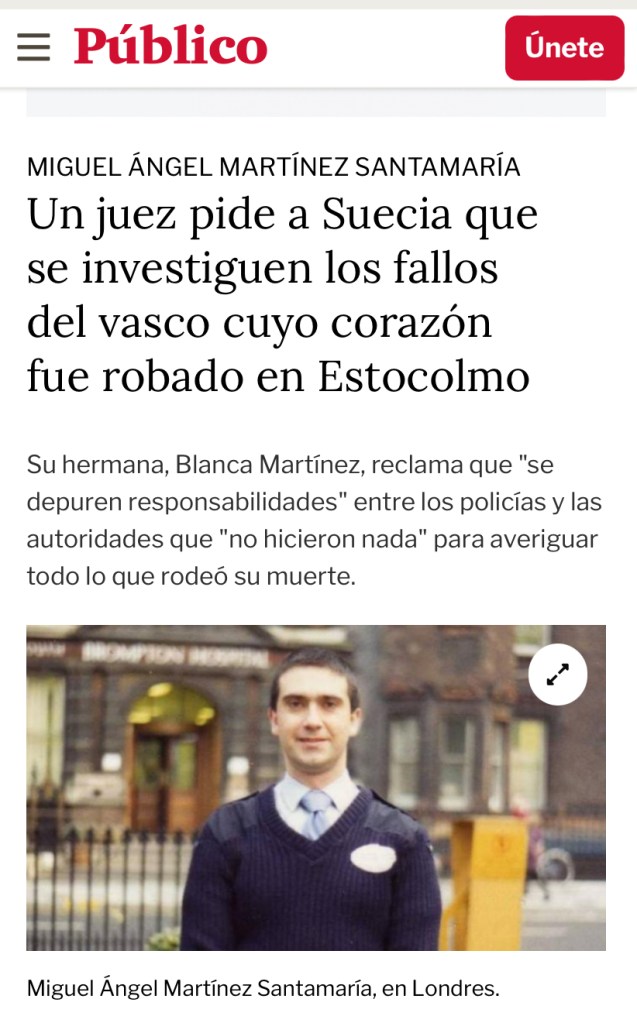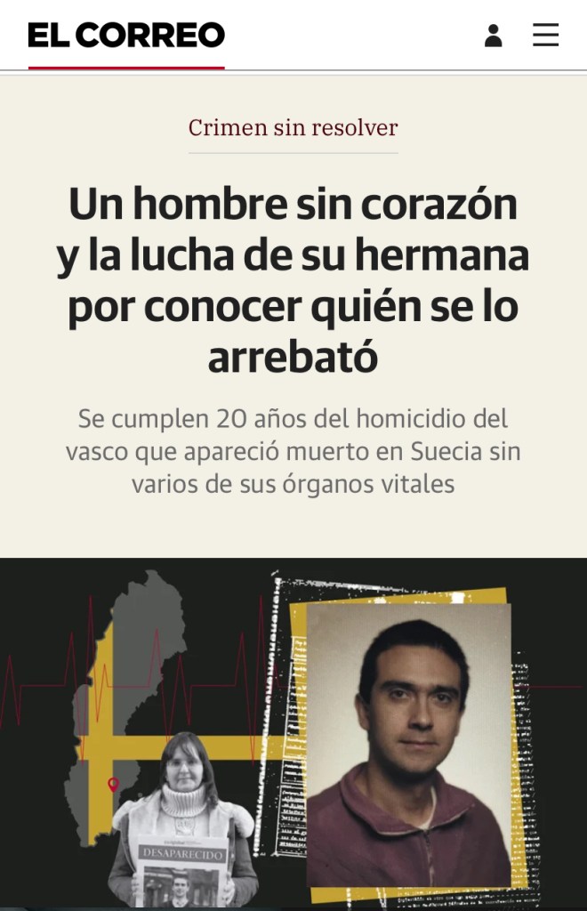 A mi hermano Miguel Angel le mataron, le quitaron el corazón, el hígado, el páncreas, ni tan siquiera se molestaron en realizar una identificación del cadáver acorde a los protocolos europeos, ocurrió en Suecia, era un ciudadano vasco. Pese a la gravedad de los hechos, ninguna institución sueca, europea, española, vasca, abrió una investigación policial ni judicial. Mi activismo es una consecuencia directa de esa herida colectiva y personal, y de la total desprotección por parte de quienes ostentan la responsabilidad de defendernos.